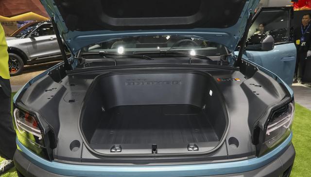 外观方面,福特智趣烈马在Bronco Sport设计思路的基础上做了进一步的升级调整,前脸部分黑色的粗壮中网与两侧大灯组相连接,呈贯穿式造型,中央有着硕大的“BRONCO”英文LOGO,车头的下方还有着向外突出的下包围,视觉效果十分硬朗。