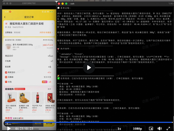 《科创板日报》记者对AutoGLM进行了实测,下达“帮我在美团点一杯冰豆花”指令后,系统通过云端虚拟手机自主完成打开App、搜索店铺、筛选商品、关闭广告弹窗等操作,最终跳转至结账界面,按指南在支付前停止操作,全程耗时约一分半钟。